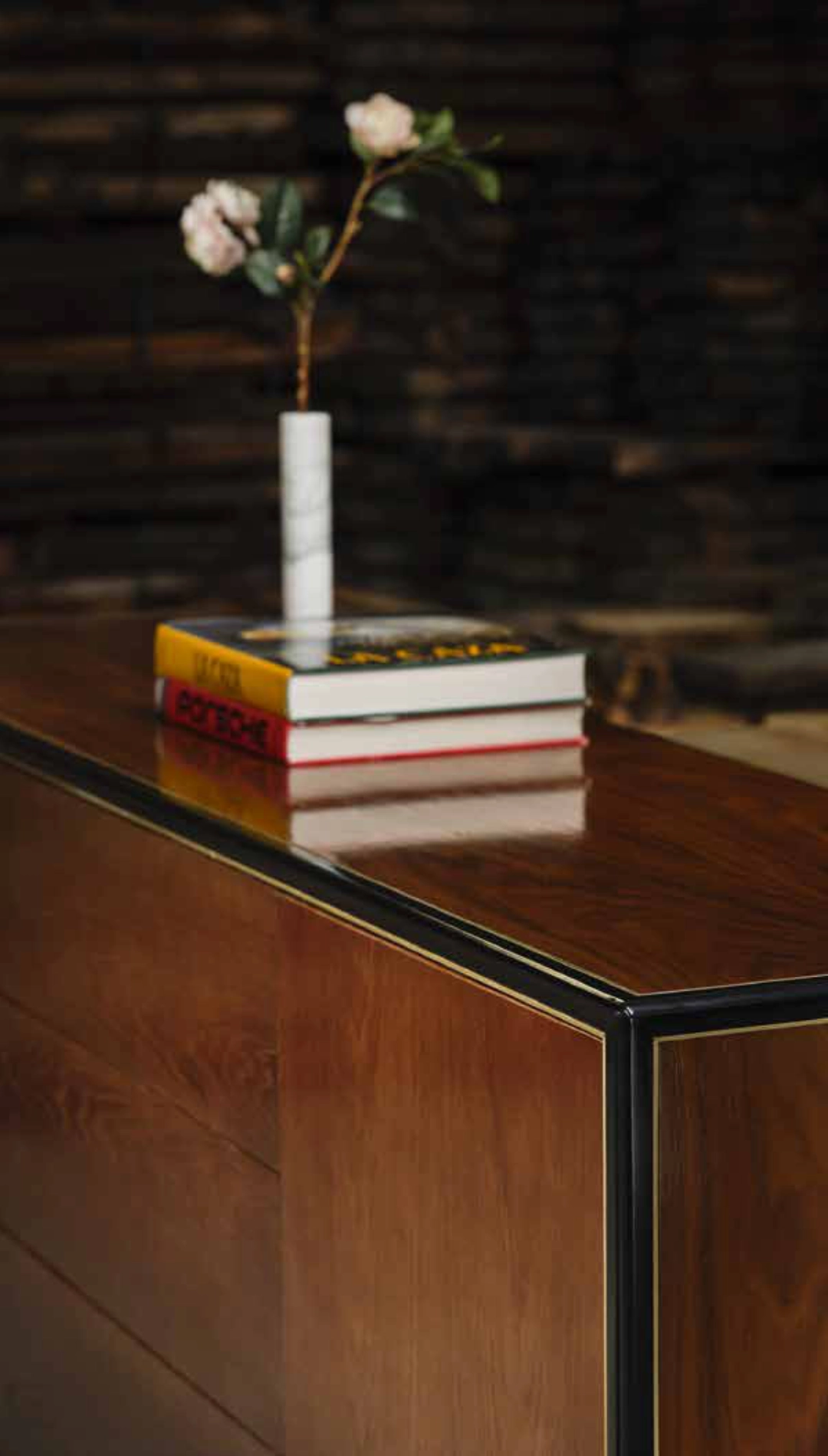 Desenhámos um aparador de fácil leitura visual, robusto, que se distinguisse pela presença de detalhes nas arestas e na própria madeira e que cumprisse em pleno a função de apoio numa sala de jantar.
