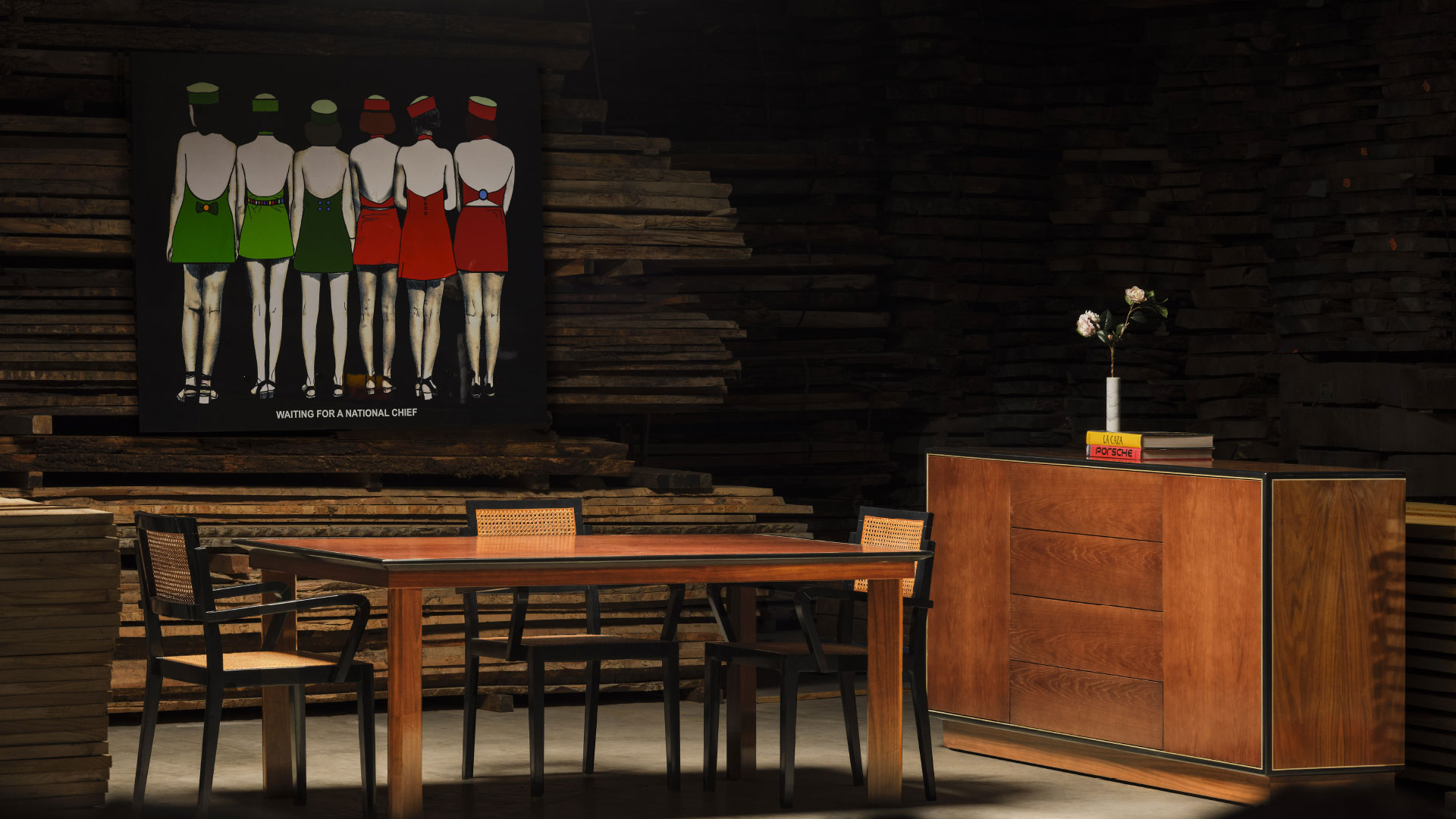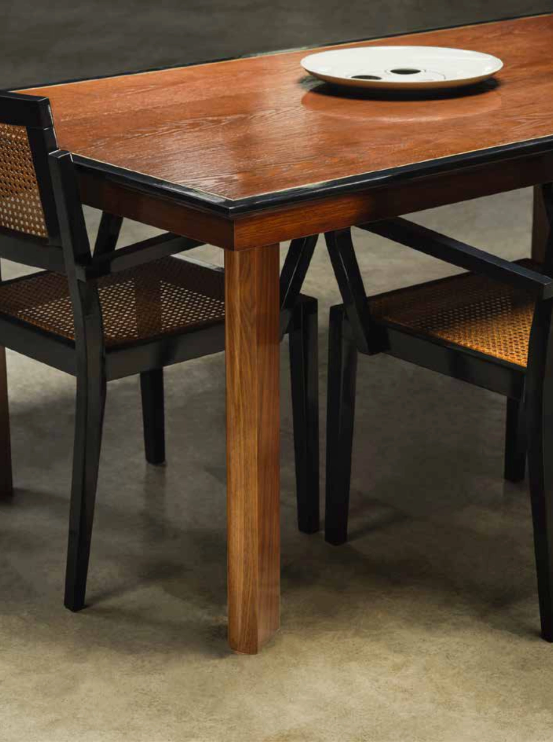 Pensámos em algo que evocasse a genuinidade natural daquela zona específica de Portugal e que se traduzisse em arrojo, solidez e elegância, procurando coerência e harmonia entre o aparador, mesa e cadeiras.
