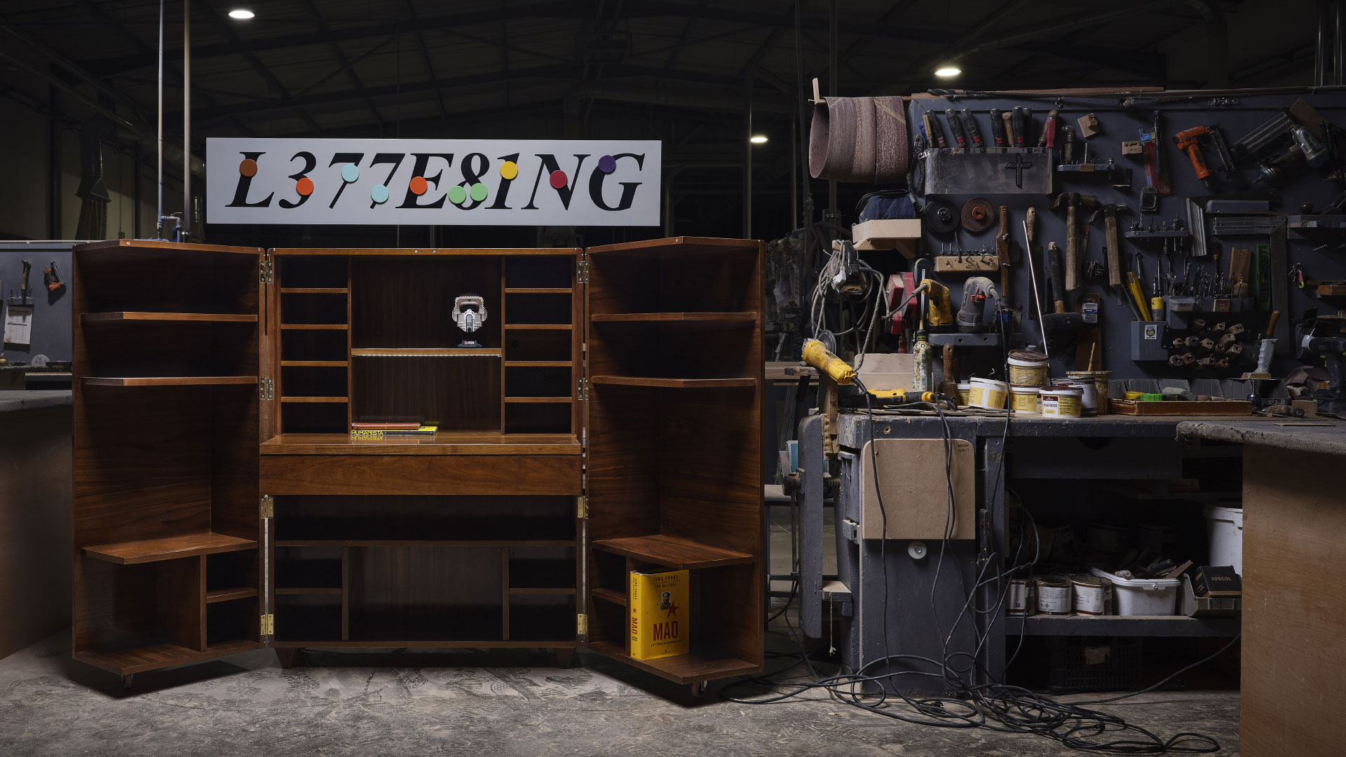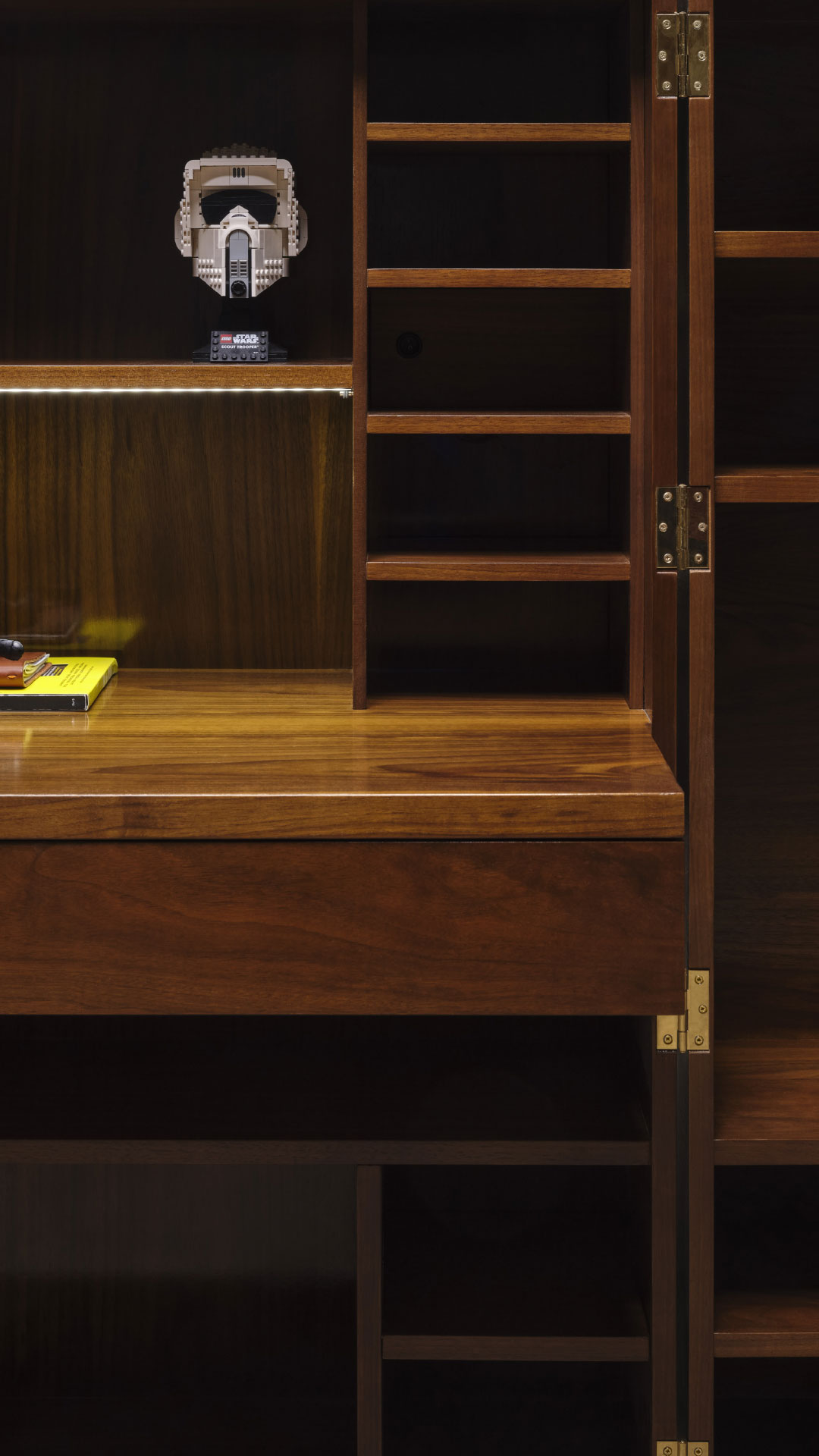 Com arrumação e mesa próprias, representa como que um cofre de trabalho, que se abre e fecha numa lógica de rentabilização de espaço.